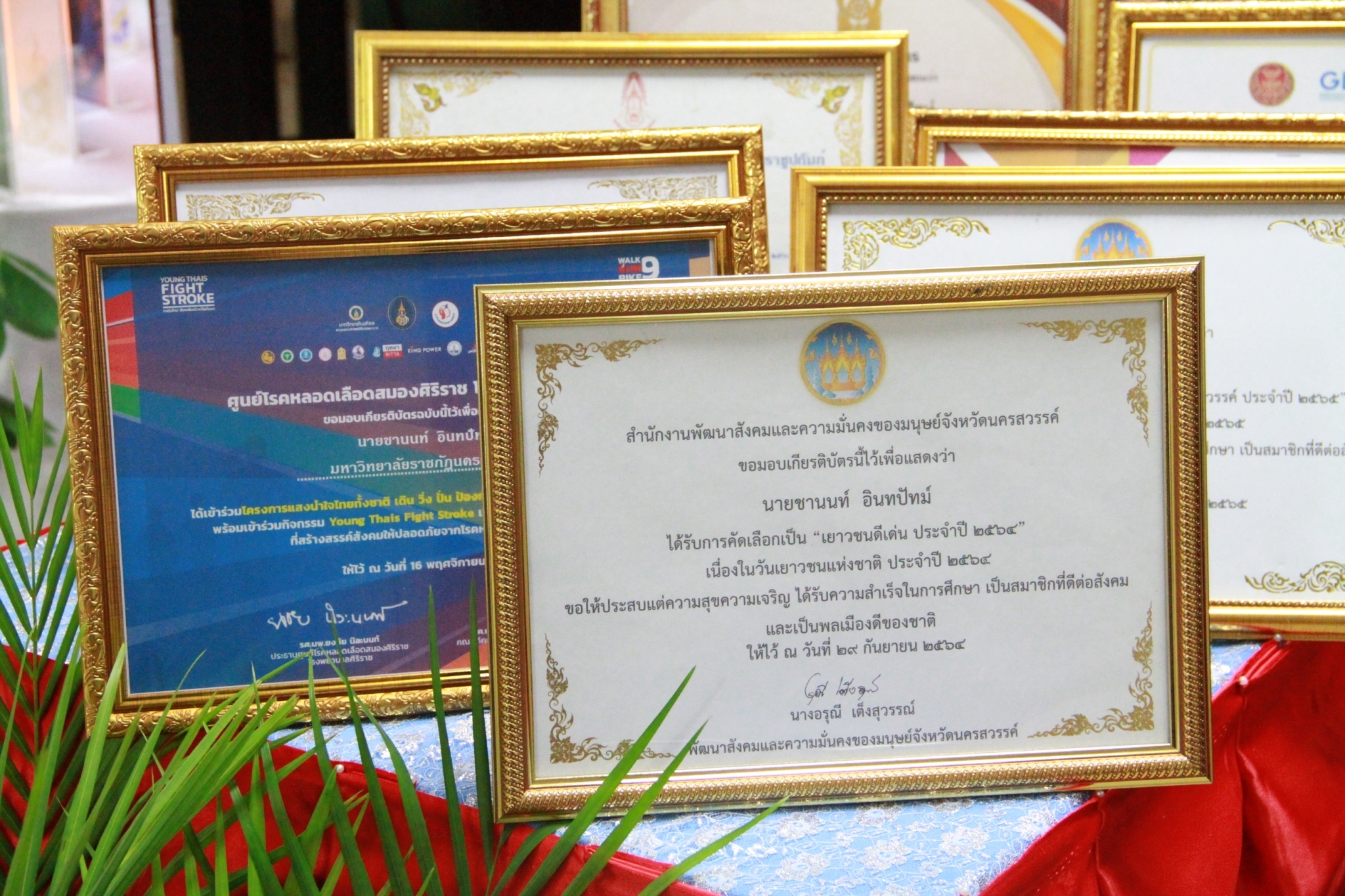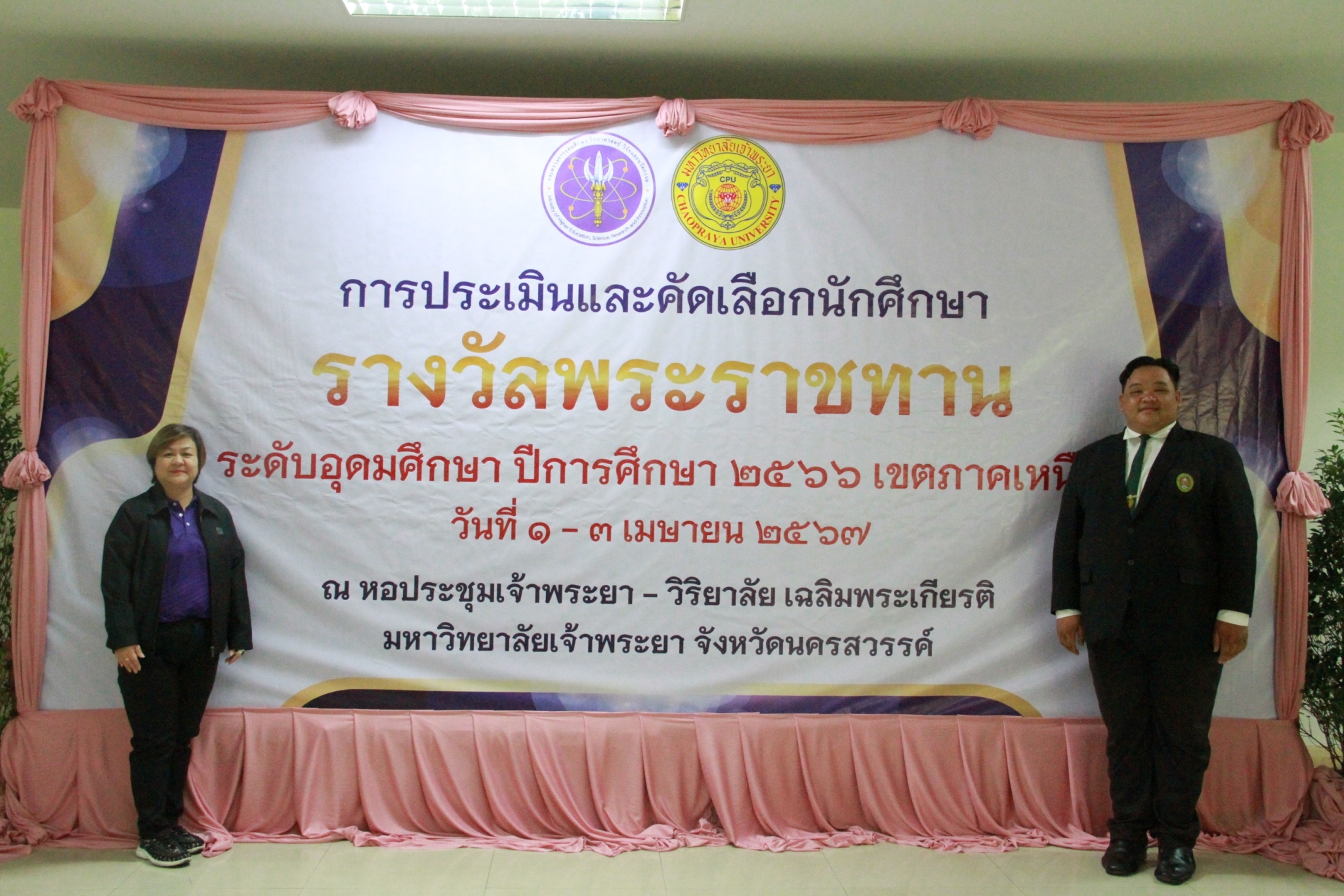 วันที่ 2 เมษายน 2567 มหาวิทยาลัยราชภัฏนครสวรรค์ มอบหมายให้ ผู้ช่วยศาสตราจารย์แวววัน ชมพูนุท ณ อยุธยา รองอธิการบดีฝ่ายกิจการนักศึกษา และการจัดการทรัพย์สิน พร้อมด้วย อาจารย์ปรัศนีย์ นัยนานนท์ ผู้ช่วยอธิการบดีรักษาการผู้อำนวยการกองพัฒนานักศึกษา นางสาวรุจนี บ่างศรีวงษ์ หัวหน้ากลุ่มงานบริหารงานทั่วไป พร้อมด้วยบุคลากรกองพัฒนานักศึกษา นำนายชานนท์ อินทปัทม์ นักศึกษาชั้นปี ที่ 4 สาขาวิชารัฐศาสตร์ คณะมนุษยศาสตร์และสังคมศาสตร์ เข้าร่วมการประเมินและคัดเลือกนักศึกษารางวัลพระราชทาน ระดับอุดมศึกษา (สถานศึกษาขนาดกลาง) ปีการศึกษา 2566 เขตภาคเหนือ ณ หอประชุมเจ้าพระยา -วิริยาลัยเฉลิมพระเกียรติ ศูนย์ประชุมมหาวิทยาลัยเจ้าพระยา จังหวัดนครสวรรค์